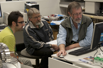 Zdislav Spetsius, Bill Griffin and Ekaterina Rubanova discussing Ekaterina’s PhD project.