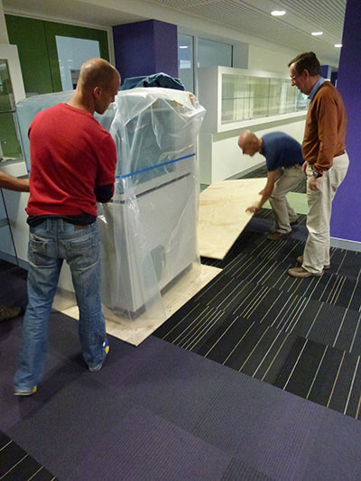 Navigating the halls with the new PANalytical Axios 1 kW X-ray Fluorescence Spectrometer, installed in November 2012.