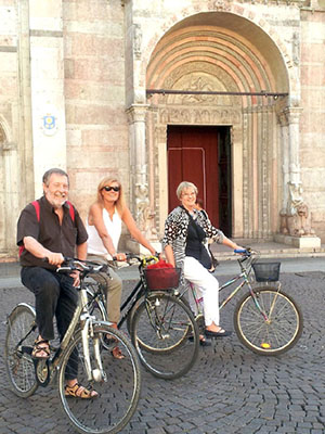 Bill Griffin, Costanza Bonadiman and Sue O’Reilly cycling through the streets of Ferrara, Italy. Sue O’Reilly was awarded a Copernicus Visiting Professorship for 2013 at the University of Ferrara.